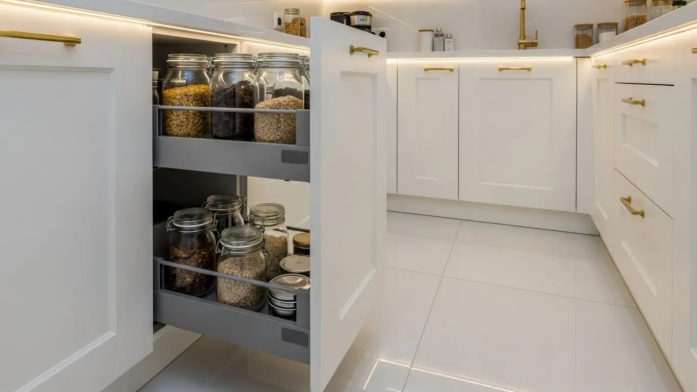 Dikey depolama çözümleri, küçük mutfaklarda alan kazandırır. Duvara monte edilen raflar ve askılık sistemleri, tezgah üstü alanı boşaltır ve daha fazla çalışma alanı sağlar.